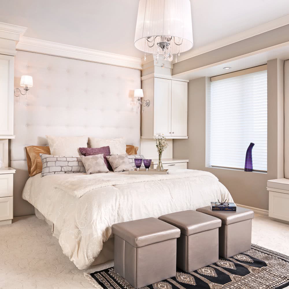 - В бело-бежевой спальне стоит позаботиться о ярком, белом свете.