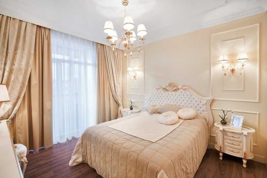 Бежевая спальная комната в классическом стиле с оригинальными светильникамиИсточник rusmebelshop.ru