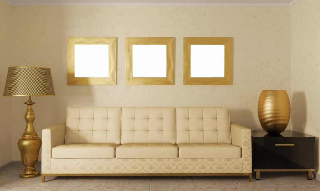 эффектно и красиво будут смотреться фотографии и картины в золотом обрамлении