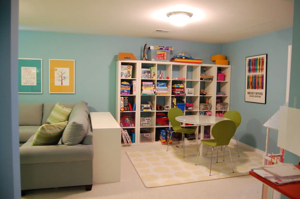 При определении игровой зоны в детской комнате не забудьте, что большинство детских активных игр происходит на полу.