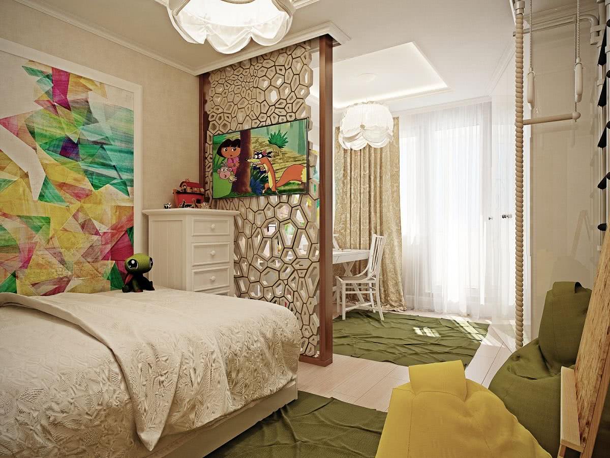 Отличным решением для зон в детской комнате может быть применение визуальных ограждений.