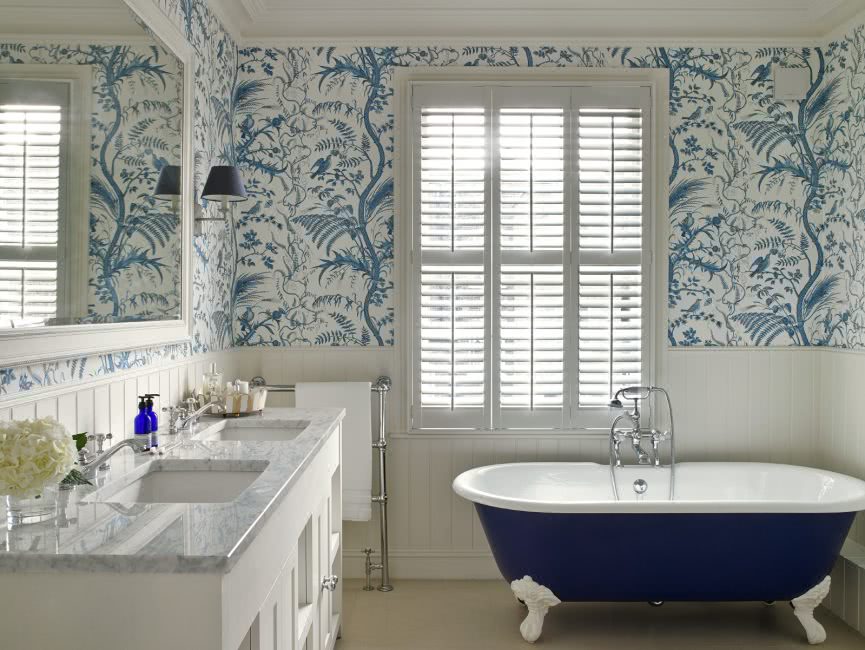 Правильный подбор и наличие хорошей вентиляции позволяют использовать обои в оформлении ванной комнаты.