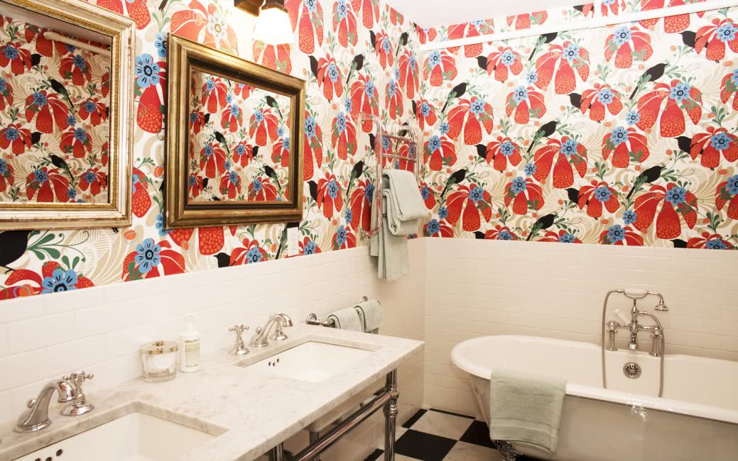 С помощью обоев можно создать неповторимый дизайн ванной комнаты