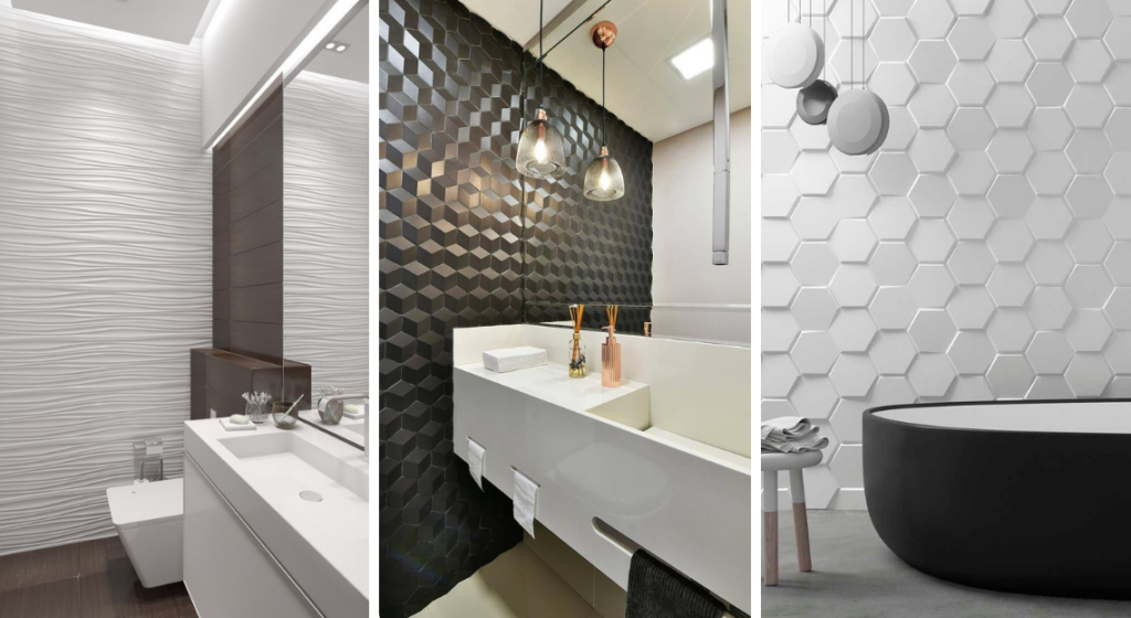 Позитивно удивительной новинкой являются трехмерные мозаики с очень разной толщиной отдельных крошечных плиток. Такая 3D-плитка придает эффектный вид и должна быть аккуратно использована в ванной.
