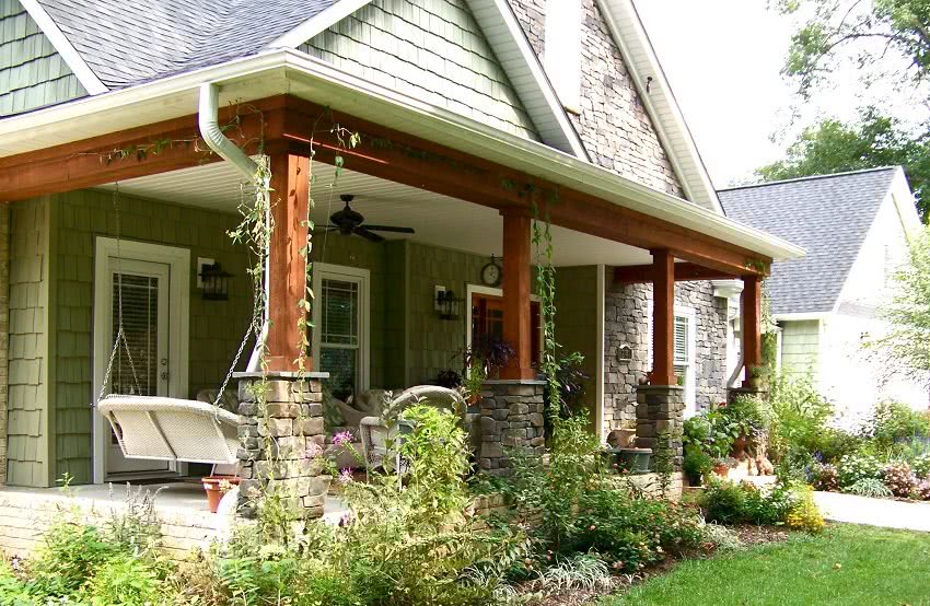 Отделка фасада камнем станет не самым дешевым удовольствием, но создаст удивительно гармоничный вид, прекрасно вписывающийся в большинство ландшафтных дизайнов.