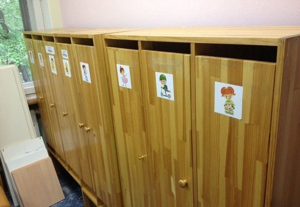 - Шкафчики должны быть оформлены индивидуально для каждого ребенка. Он должен издалека узнавать свой шкаф.