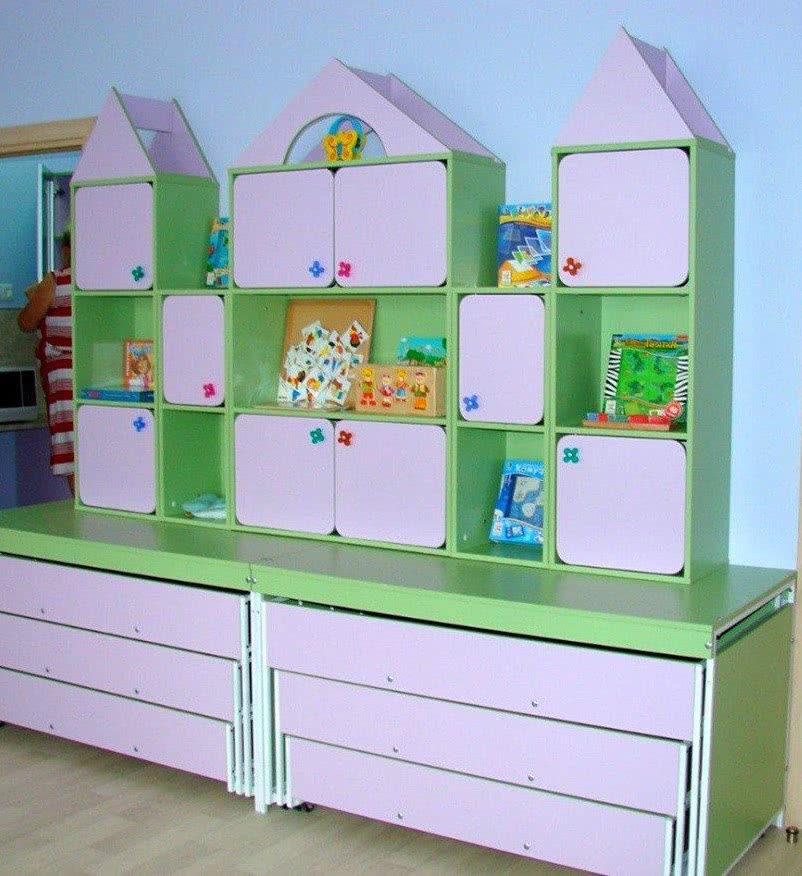 Оформление шкафчиков для игровой зоны должно соответствовать развитию детей определенного возраста, особенностям их восприятия