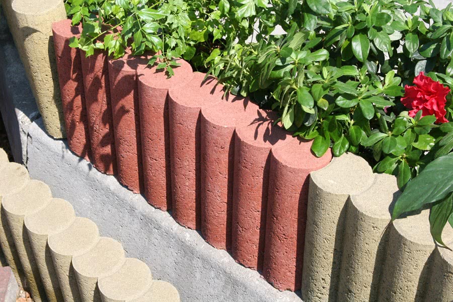 Весьма интересным вариантом может оказаться сооружение из бетонных плиток. Сделать его просто. Каждая плитка имеет металлический штырь, при помощи которого она крепится к земле.