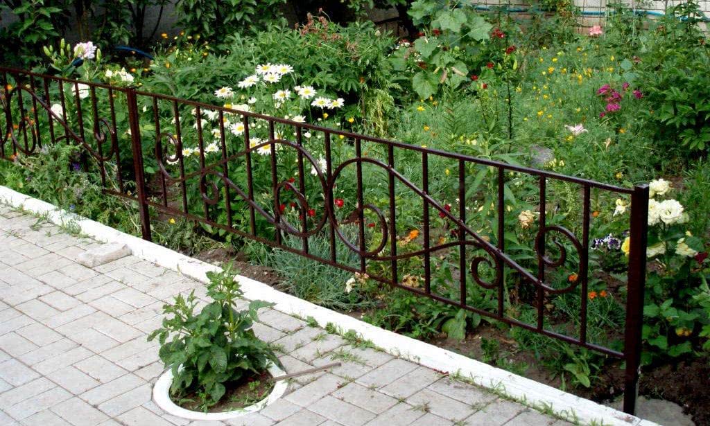 Они отличаются по технике изготовления, материала, способами производства. Существуют кованые, литые и сварные ограждения. Глядя на них, возникает чувство надежности, защищенности нежных растений от посторонних воздействий.