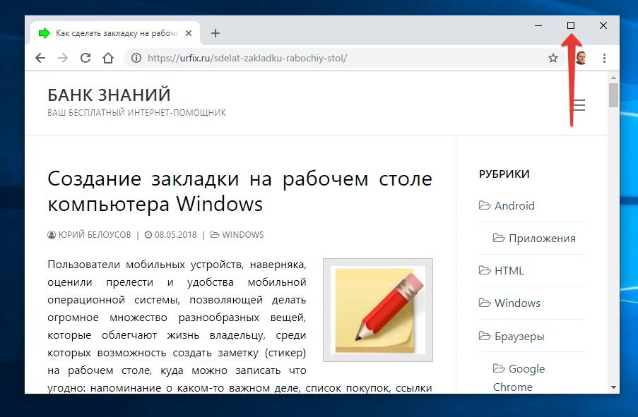После нажатия кнопки «Развернуть» окно браузера снова станет занимать весь полный рабочий экран.