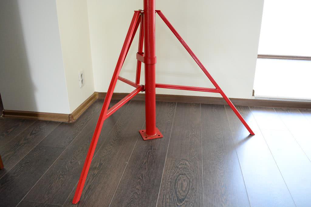 Элементами опалубочной конструкции также могут служить домкраты, устанавливаемые у основания стоек. С их помощью производится выравнивание опорных стоек по высоте.