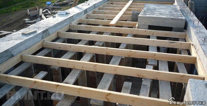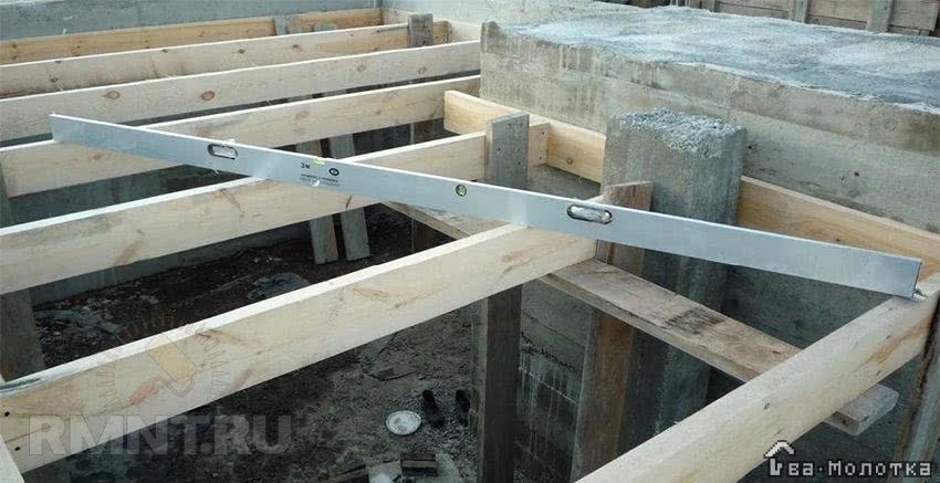 - Укладка ригелей. Представлены в виде продольных брусков, удерживающих опалубку.