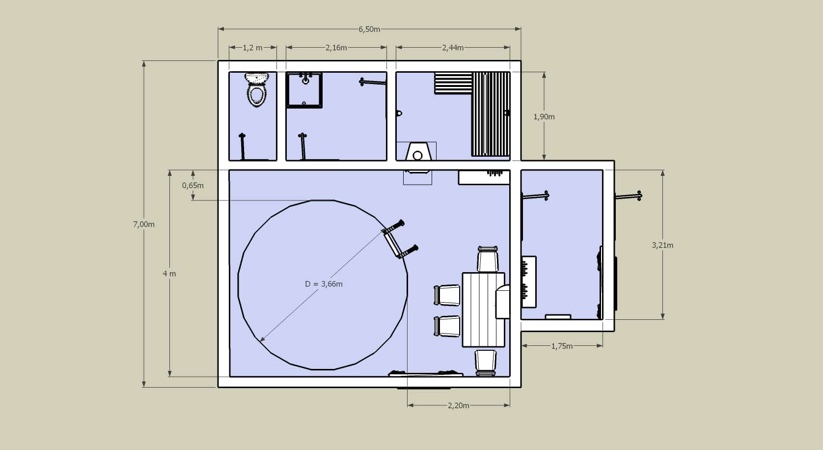 Размер бани на участке целесообразно высчитывать исходя из доступной площади под застройку: чем меньше габариты участка, тем компактнее должна быть баня. Для небольшой бани достаточно будет обустроить парную и предбанник. Однако, допускаются варианты, где баня состоит только из парной.