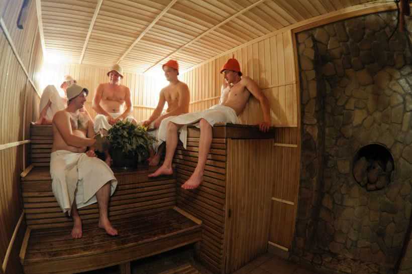 Почему они бы сделали так? Потому что в сауне принято сидеть на полке, а не лежать. Они сидят и потеют, вот и вся банная процедура. Температура при этом достигает 70-90 градусов, влажность — 5-15%.