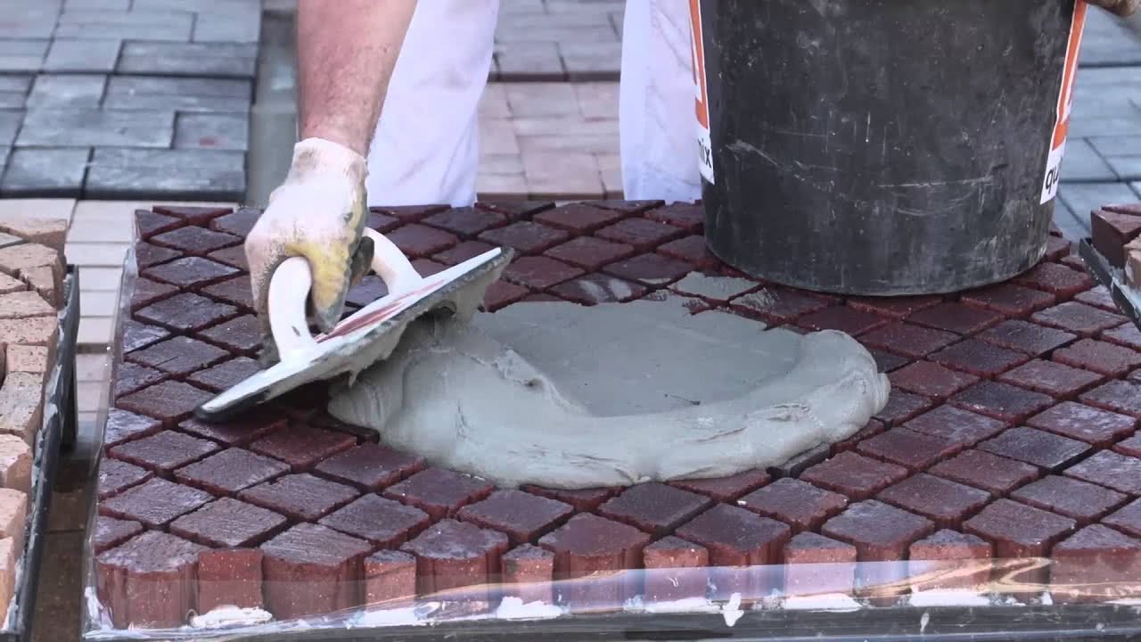 Затирка швов тротуарной плитки цементом займет больше времени и сил, чем заделка песком.