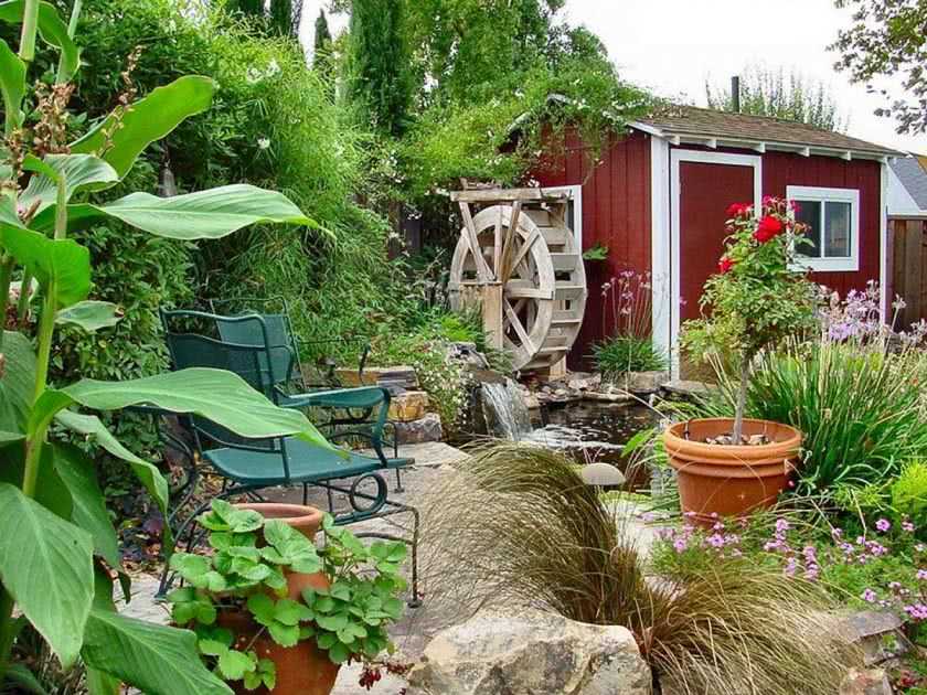 Единство стиля – если дом оформлен в деревенских мотивах, то и сад должен ему соответствовать