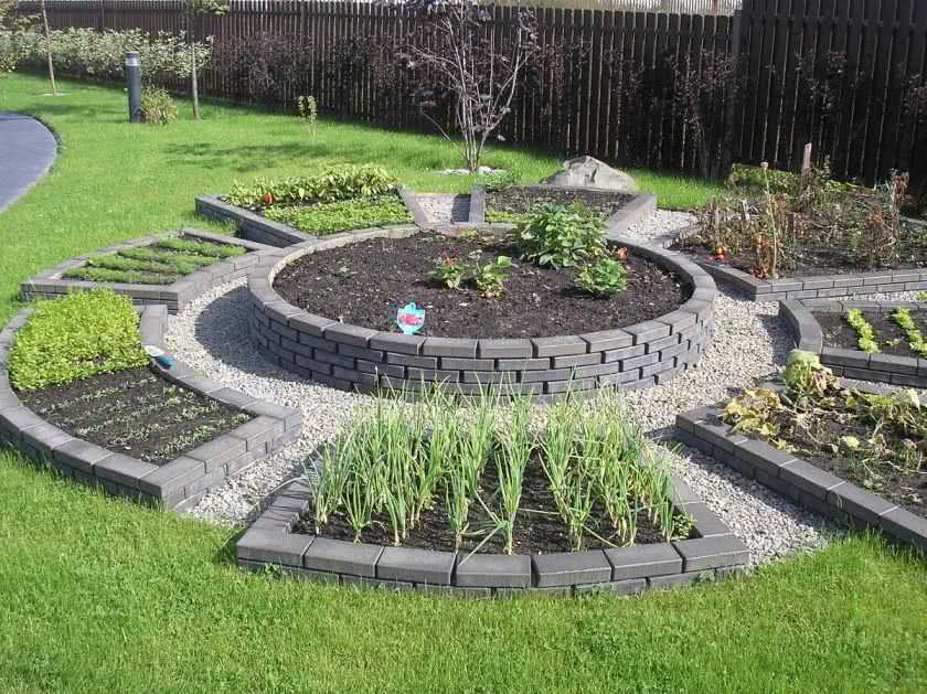 В роли разделителей могут выступать низкорослые кустарники, изгороди с вьющимися растениями, клумбы, бордюры или невысокие заборы из кирпича, натурального камня или их имитаций.