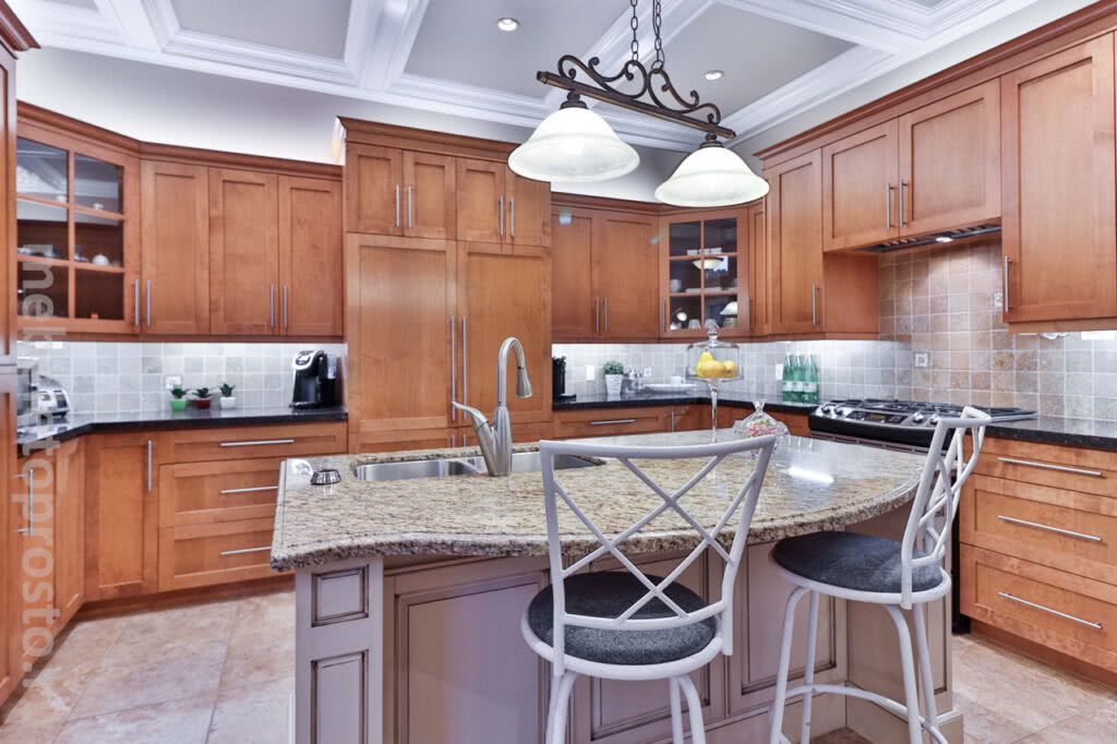 Классика остаётся популярной вне зависимости от модных тенденций. Именно этот стиль символизирует устойчивость традиций, комфортную атмосферу интерьера. Кухонные фасады дополнены рельефными текстурами, серебряным, золотым патинированием. Преобладает спектр бело-бежевых, коричнево-кофейных тонов. Вписываются в стилистику резные детали мебели. Преобладают текстуры окрашенного дерева. Островная часть кухни должна соответствовать этим традициям.