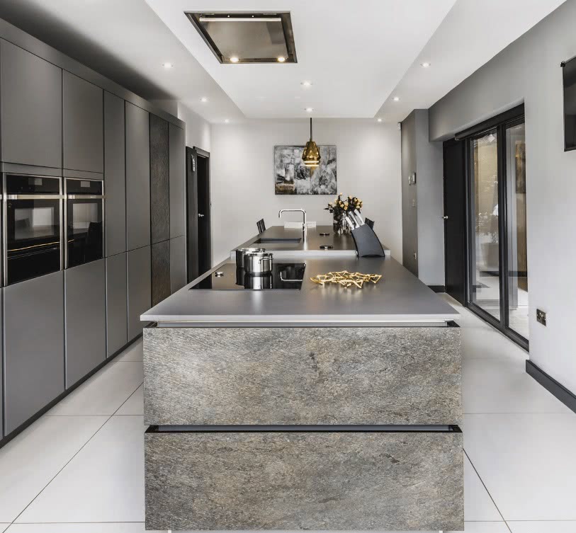 Где применяется современный дизайн кухни с островом?