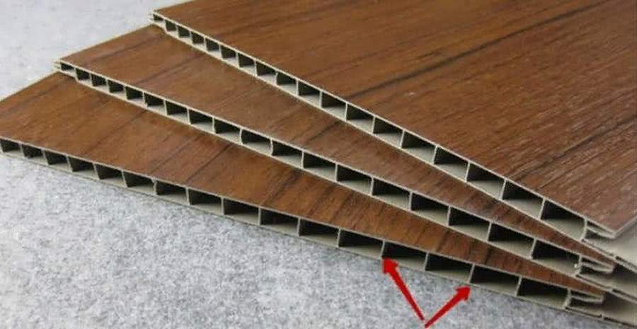 - Конструкция. Это две водонепроницаемые поверхности, соединенные перпендикулярными перегородками. Они в свою очередь образуют воздушные ячейки. Такая структура обеспечивает повышенную звуко- и теплоизоляцию. ПВХ устанавливаются не вплотную к стене, а на обрешетку. То есть между стеной и пластиком остается воздушный зазор и в стыках минимальный люфт тоже присутствует, что позволяет циркулировать воздуху и препятствует появлению плесени.
