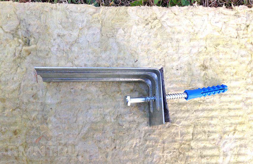 В зависимости от размера плит и особенностей проекта, выбирают оптимальный шаг установки кронштейнов. Эти металлические детали крепят к стене с помощью дюбелей, предварительно высверлив отверстия нужного диаметра.
