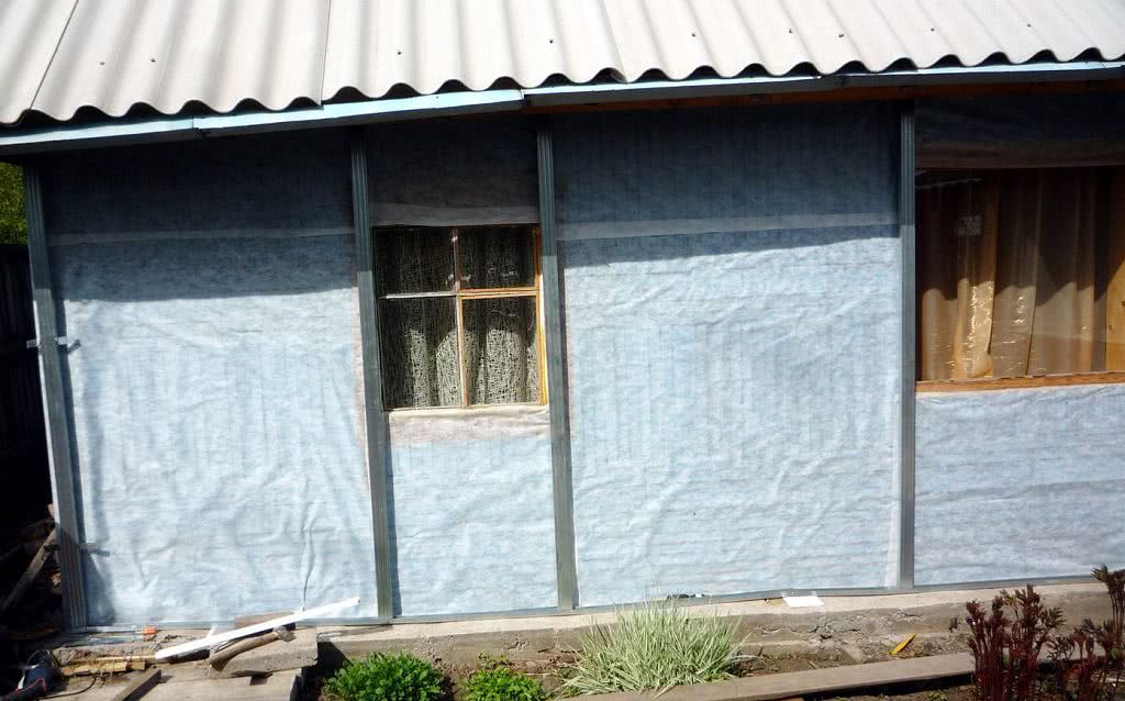 Любая внешняя отделка штучным материалом выполняется на каркас. Его размеры и сечение бруса могут отличаться, но неизменными остаются правила сборки. Изначально нужно покрыть несущую стену грунтом, и положить пароизоляцию. Она должна располагаться таким образом, чтобы естественный процесс отвода жидкости из помещения не был затруднен. Если уложить пленку не той стороной, то пар не выходя наружу, будет скапливаться внутри стен и на теплоизоляционном материале, разрушая их.