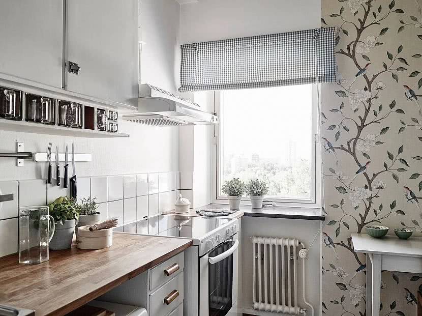 Пожалуй, один из самых дешевых вариантов, который можно придумать для ремонта. Стоит отметить, что для кухни подходят только флизелиновые материалы, бумажные обои, увы, быстро придут в негодность.