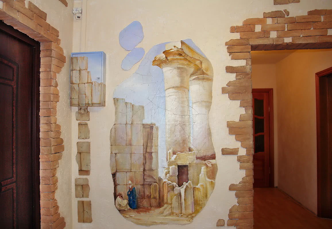 Фреска станет главным элементом помещения, каменные вставки дополнят общую картину в интерьере.