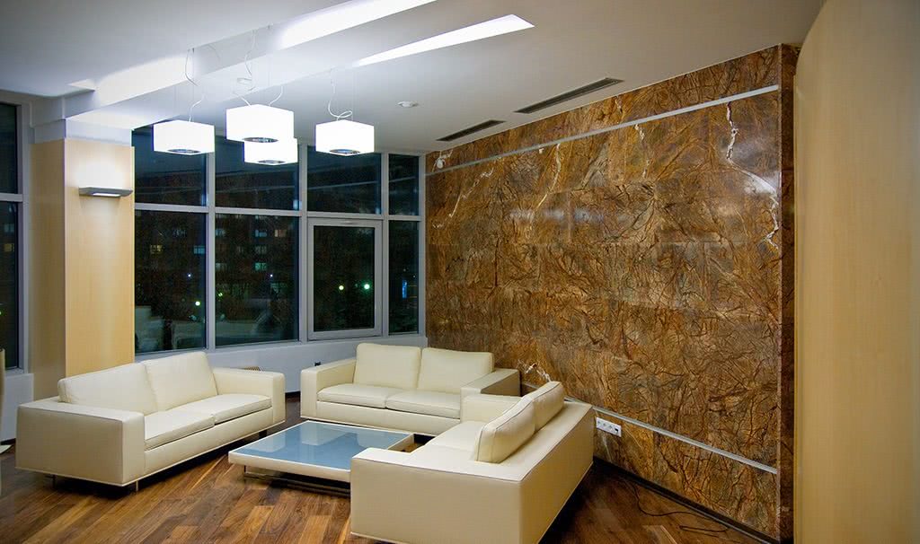ГостинаяУсиление отдельных зон. Место для отдыха, камин, библиотека, телевизор или музыкальный центр − выборочное использование позволяет создать уют и комфорт в гостиной, делая ее роскошной и современной;