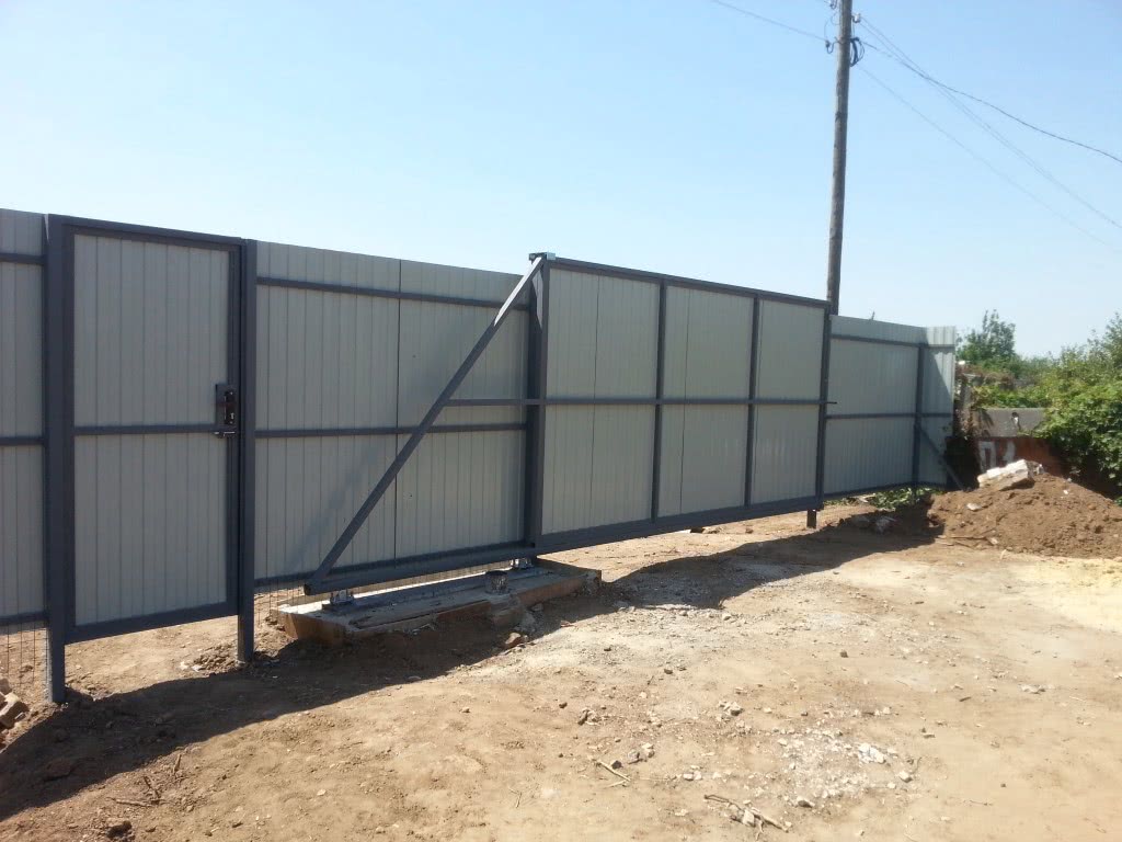 Консольные откатные конструкции плотнее других типов ворот прилегают к забору. При этом не остается даже щелки для назойливых глаз. Другим преимуществом является возможность установки автоматики. Недостаток такого решения заключается в сложности монтажа.