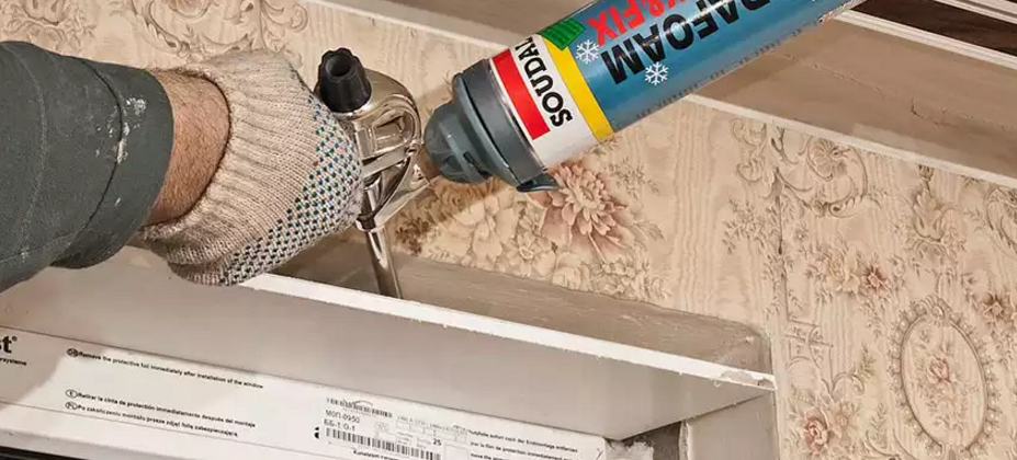 Но при этом до поверхности торцов оконной коробки оставляют расстояние в 20 – 30мм в качестве углубления для раствора. Заделка пенозаполнителями нужна для обеспечения звукоизоляции. Послек того как пена нанесена, ждут, когда она высохнет, чтобы перейти к следующему этапу работ;