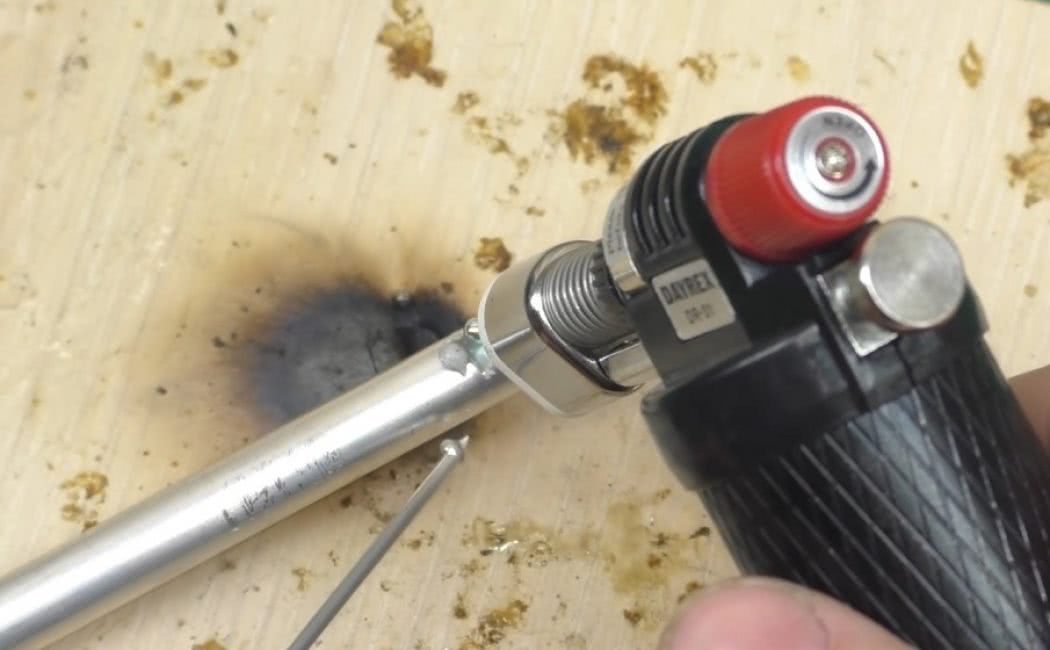Делать спайку алюминиевых деталей при помощи маломощных горелок очень проблематично, поэтому лучше использовать горелку-насадку на баллон