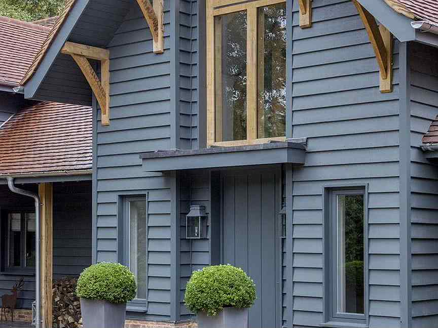 После монтажа деревянный фасад покрывается защитным слоем краски
