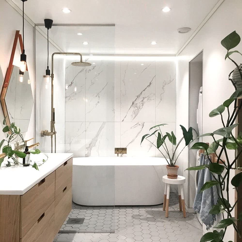 В дополнение к вышеупомянутой классике, фактически, каждая идея для потолка ванной комнаты хороша, пока данный материал имеет эстетическую ценность и хорошо переносит контакт с высокой температурой и влажностью. Популярные решения на рынке интерьера включают потолочные панели и световые коробы для ванных комнат. Металлическая потолочная плитка, например, из таких материалов, как олово, алюминий или медь, будет еще одним интригующим и функциональным решением.