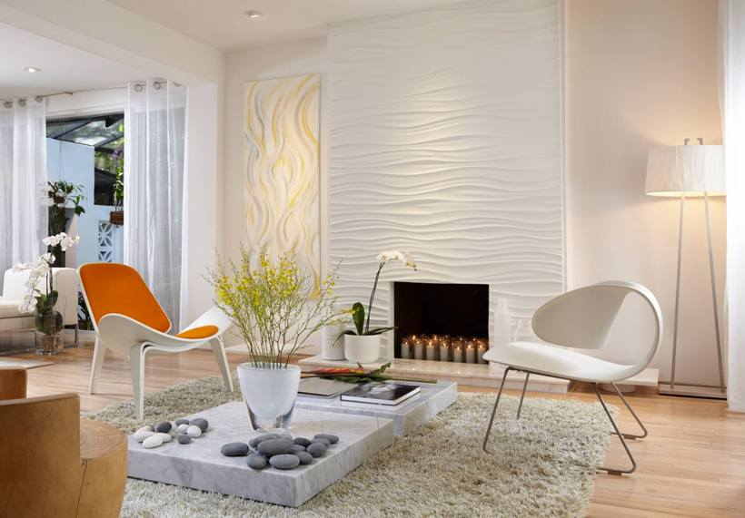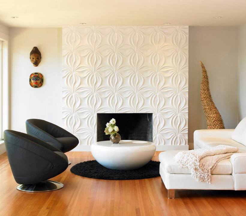 Не меньшей популярностью пользуются и 3Д панели под камень, которые позволяют с абсолютной достоверностью воспроизвести рельефы каменной кладки. Модули, имитирующие фактуру дикого известняка или сланца – великолепный способ украшения каминов, ниш, арок, колонн и других самостоятельных элементов интерьера.