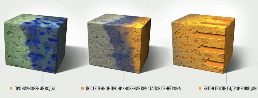 Бетон после гидроизоляции Пенетроном