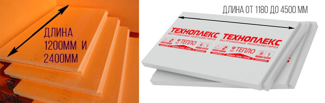 Размеры листа пеноплекса в зависимости от толщины, плотности и назначения