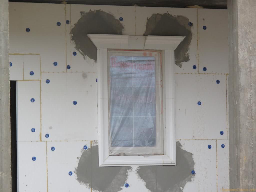 Бесклеевая технология утепления фасада пенопластом предусматривает крепление плит ППС на дюбель-гвозди с широкой шляпкой (зонтиком).