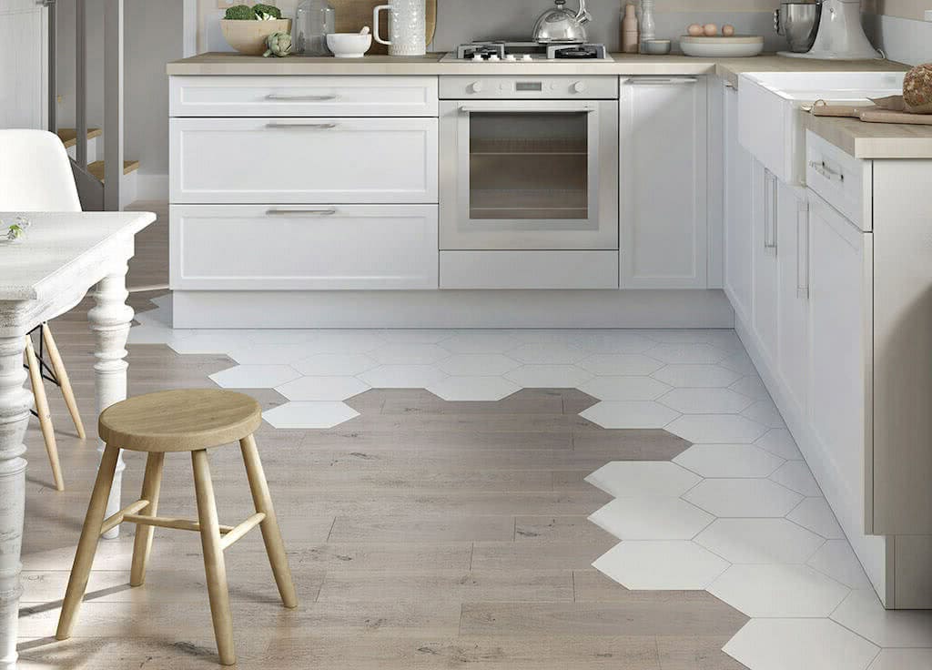 Использование комбинированных материалов на кухне имеет множество преимуществ. Однако многие боятся использовать плитку и ламинат в одном пространстве из-за сложности стыковки двух разных покрытий. Расстояние между материалами должно быть обязательно. Если залить шов эпоксидной смолой, через какое-то время ламинат начнет коробить, пол быстро потеряет привлекательный внешний вид и придет в негодность.