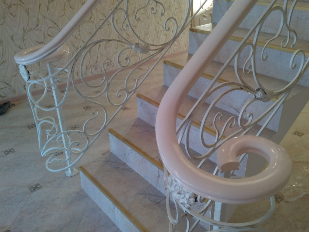 Металл и пластик – как мы писали ранее, металл может использоваться в виде каркаса, на который будут крепиться декоративные пластиковые элементы. Пластик также может быть использован в качестве накладки на перила из металла.