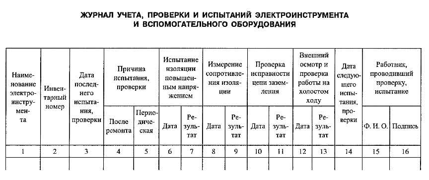 Образец журнала учета проверки электроинструмента