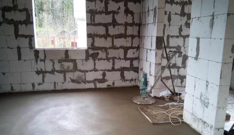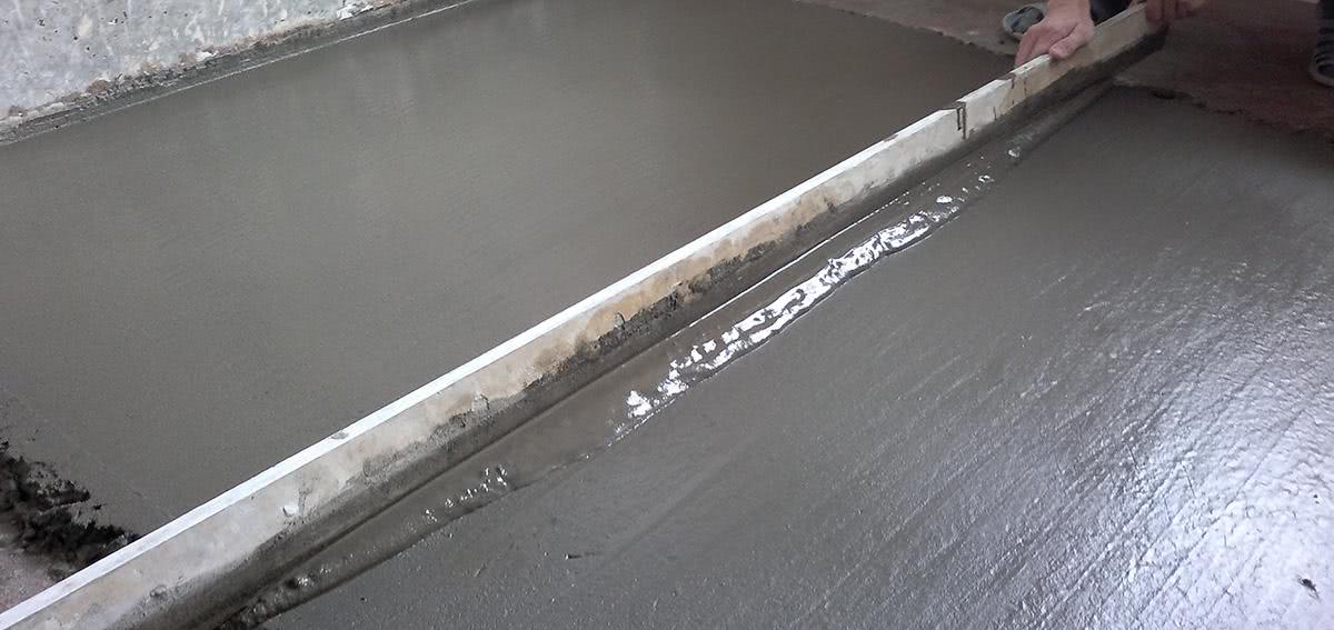 Заливка пола — пескобетон хорошо разравнивается и уплотняется, в отличии от обычной бетонной стяжки