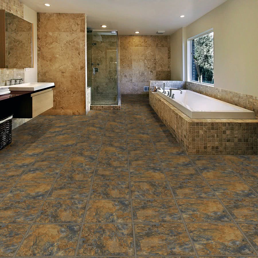 Примеры виниловой плитки в ванной
