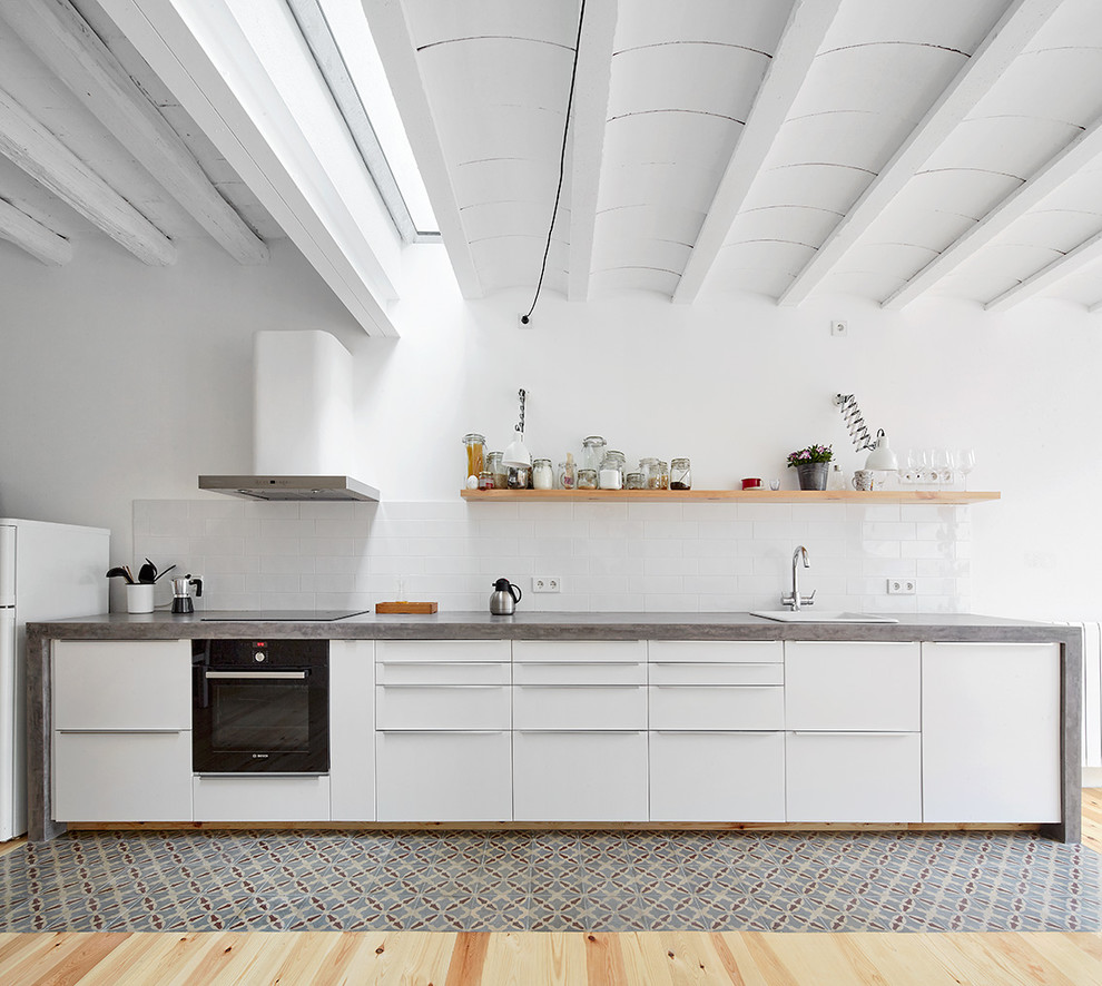 Фартук и пол этой классической кухни облицован испанской плиткой Vives
