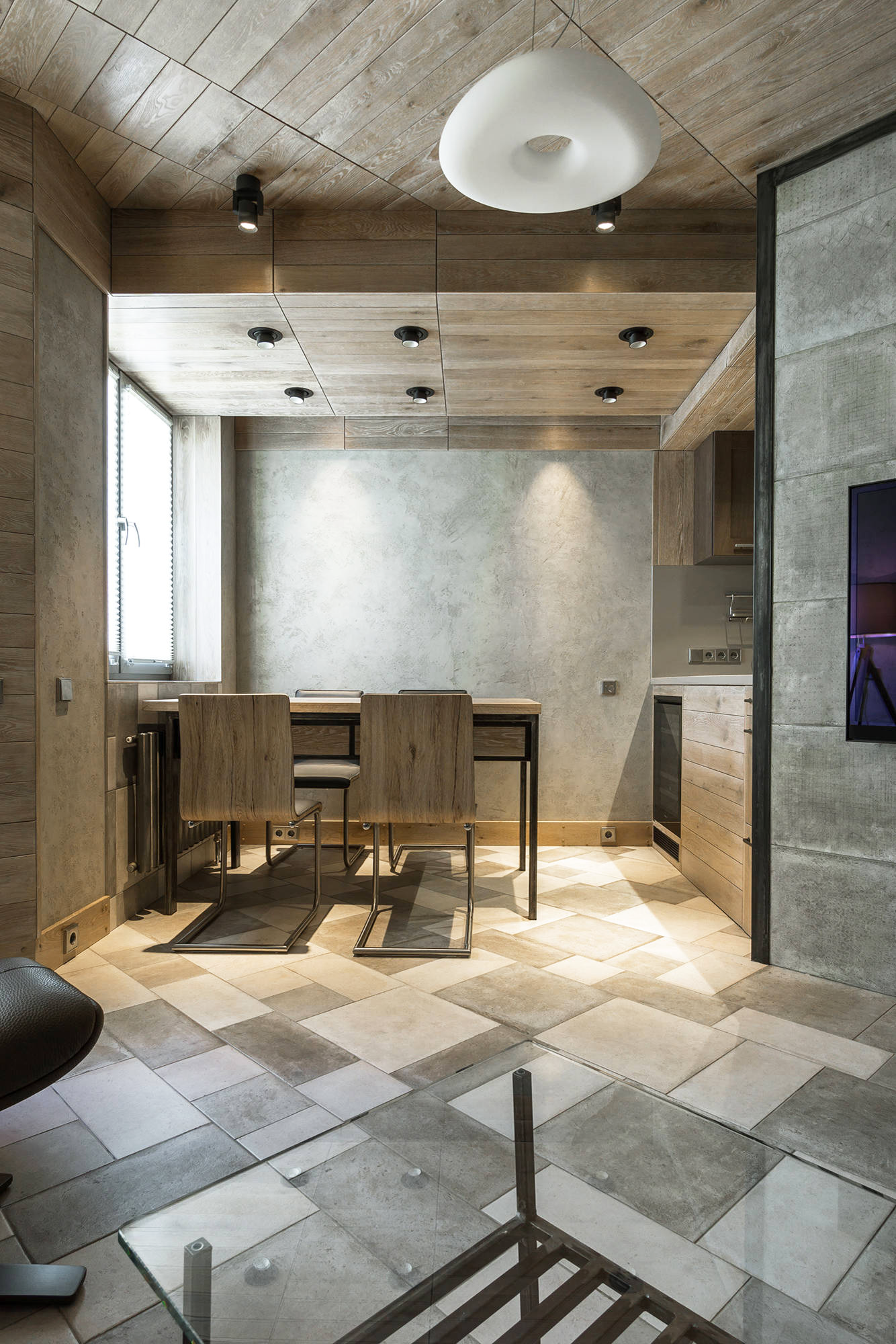 - чем светлее кухонный пол, тем больше кажется само помещение, и чем темнее покрытие — тем меньше, соответственно, кухня.