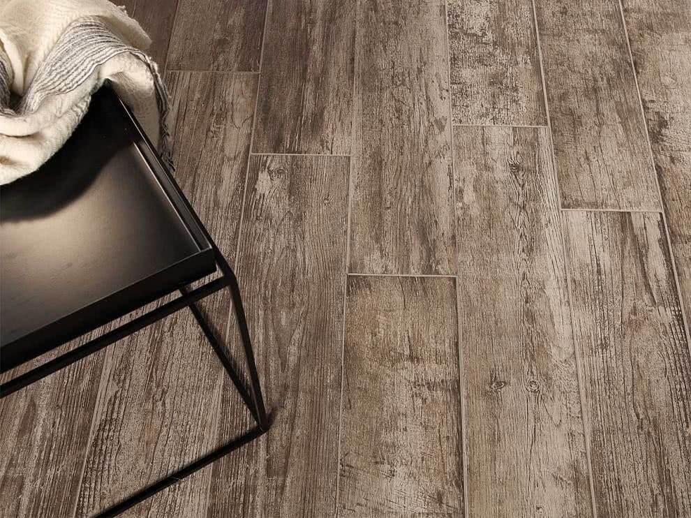 Керамическая плитка, имитирующая фактуру настоящей древесины, создает впечатление единения человека с окружающей природой