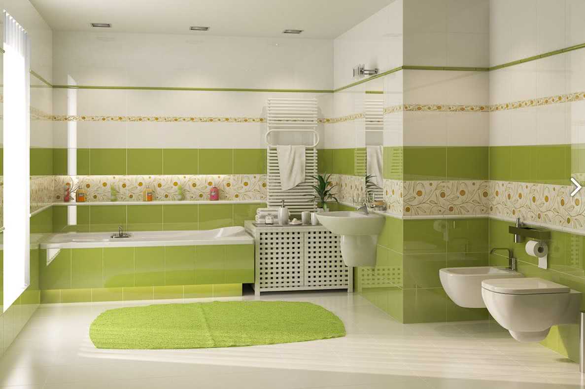 Чаще комбинируют не два, а три вида кафеля: два однотонных и декор, сочетающий оба основных цвета. Декоративные элементы могут быть разной ширины. Тогда из них можно составить полосы или колонны разной ширины. Чтобы верхняя часть не была столь монотонной и скучной добавляют тонкие полоски того же цвета, что и нижняя часть стены, а внизу добавляют растительный или цветочный бордюр.