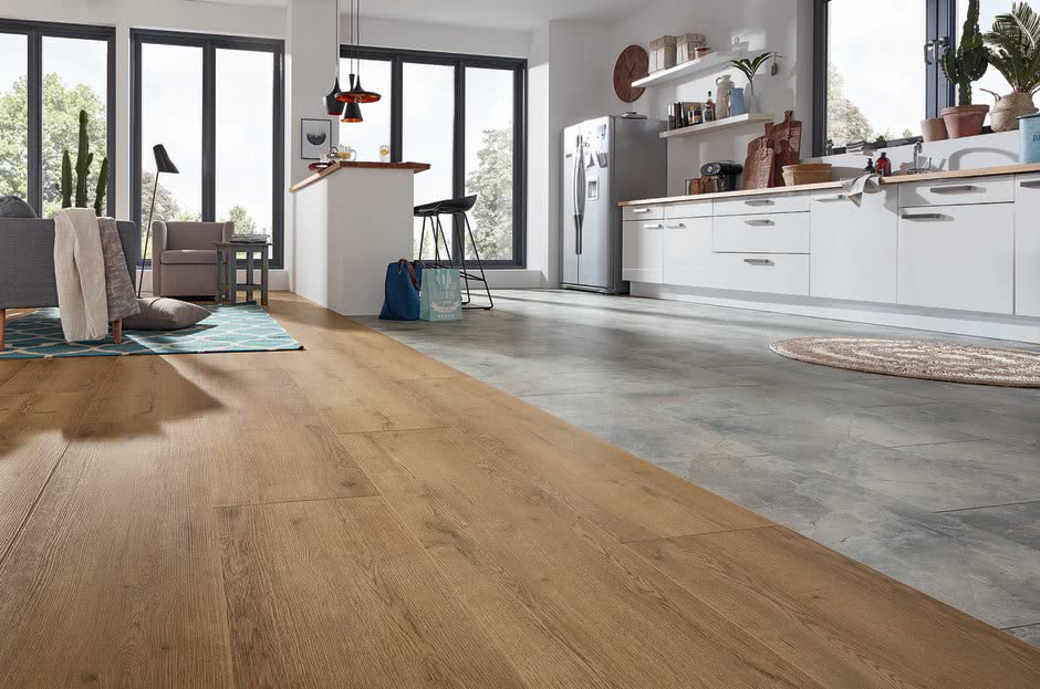 Плитка предлагается в огромном диапазоне цветов. Вы можете использовать привлекательный дизайн, который трудно найти на деревянных полах или ламинате. Плитка может быть использована для создания равномерного, элегантного пола. Особенно, когда выбираете большие однотонные варианты, например, 60 × 60 см или даже 75 × 75 см. Однородную поверхность, например, имитирующую бетон, легче всего получить с использованием выпрямленных плиток (края обрезаются под прямым углом). Современные бетонные плитки имеют размер 75 × 75 см, что позволяет им создавать практически равномерный пол.