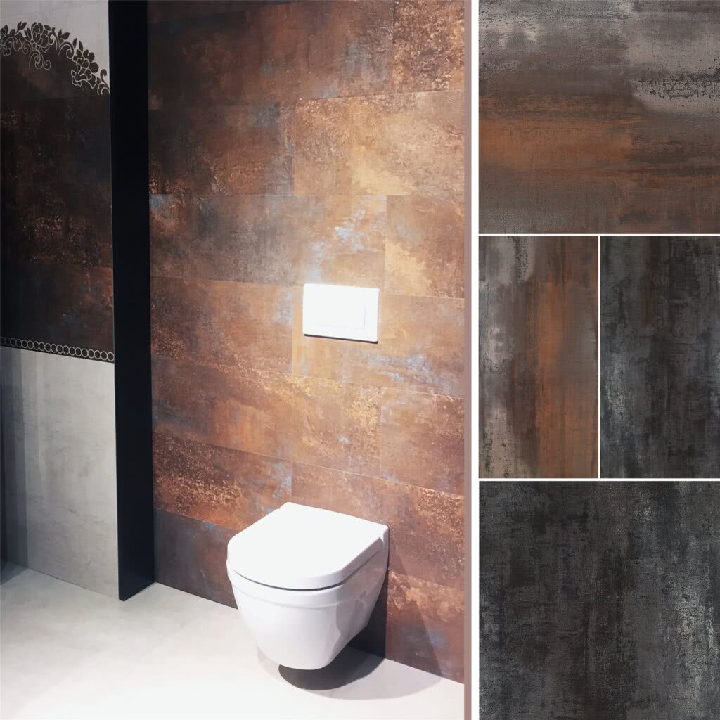 Какие цвета будут самыми модными среди металлизированной плитки? Помимо серебра и золота все отчетливее начинает преобладать плитка медных оттенков. Медная плитка появляется в предложениях продаж 2021 года не только в глянцевой версии. Чрезвычайно модными будут изделия характерного зеленого цвета, напоминающего патину на элементах из меди.