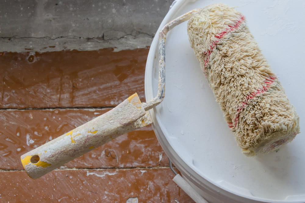 - валик можно брать как поролоновый, так и меховой; от валика зависит структура покрытия – меховая шубка дает более шероховатую, объемную поверхность, а поролон – ровную и однородную; валик насаживают на длинную ручку, например, от швабры;